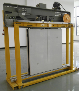 摸拟真实电梯门机构的安调和维保,满足电梯门机构实训考核要求。采用真实的电梯层门、层门地坎、层门机构、轿厢架、轿厢门、轿厢门地坎、轿厢门机构等器件,学生借助电梯门机构安装图在模拟井道及楼层中对这些器件进行安装与测量,使其符合规范要求,并通过轿厢架的上下运动模拟轿厢在井道中的运行,当平层时,门机构能够带动轿厢门与层门开闭,轿厢离开后,层门紧闭。另外,能够使学生直观地看到门机构的全部器件及整个机械动作过程 ,更有效地帮助学生掌握其工作原理。