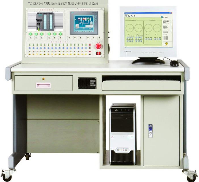 1 、 JGZX-1 型现场总线自动化综合控制实训装置 由实训桌、实训平台等组成,实训平台包含 PLC 组件、触摸屏、运动小车、温室模型、 16 路逻辑电平输入、 16 路逻辑电平输出。