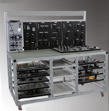 机械系统综合实训装置 由通用工作台及面板支架、由工业铝型材组成的使用T型槽螺母进行安装的安装件以及各实训模块组成,各实训模块不用时可存放到通用工作台中,使用时取出进行装配调整,使用方便,配置灵活,能满足不同阶段学生教学实训任务的需要。